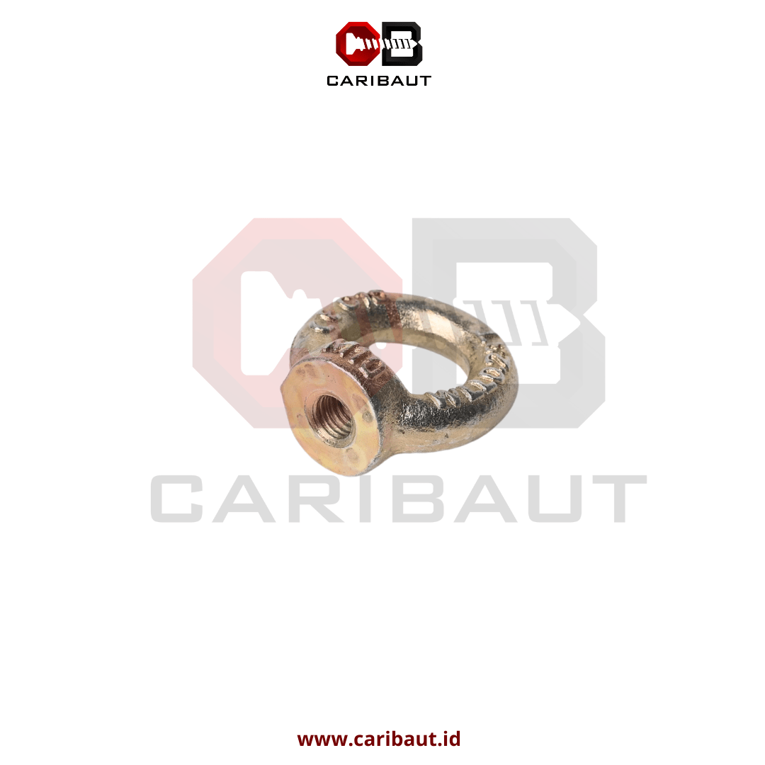 Eye Nut adalah mur dengan bagian atas berbentuk cincin atau mata, yang dirancang sebagai titik pengait untuk mengangkat, menggantung, atau menahan beban. Eye Nut biasanya dipasang pada baut atau stud bolt yang sudah tertanam di suatu permukaan atau mesin, memberikan kestabilan dan kemudahan dalam pengangkatan atau pemasangan beban berat.